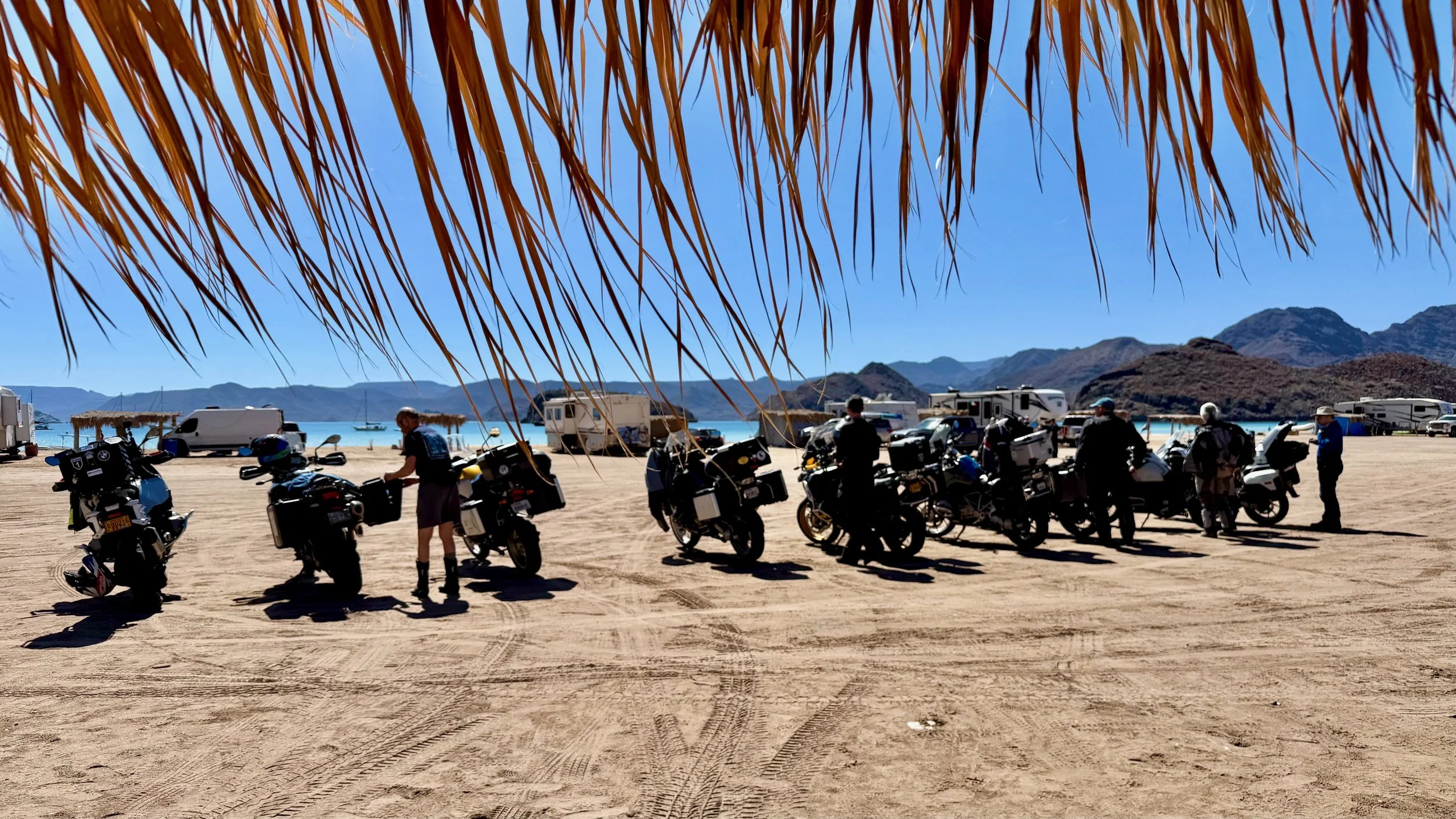 More stunning views as we continue down along the Sea of Cortez. It’s often breathtaking! Further along is La Paz, the capitol of Baja California Sur. We’ll skirt the bustling city which also hosts the ferry for those heading to mainland Mexico. It’s our longest riding day as we continue down MX-1 until we reach Los Cabos.